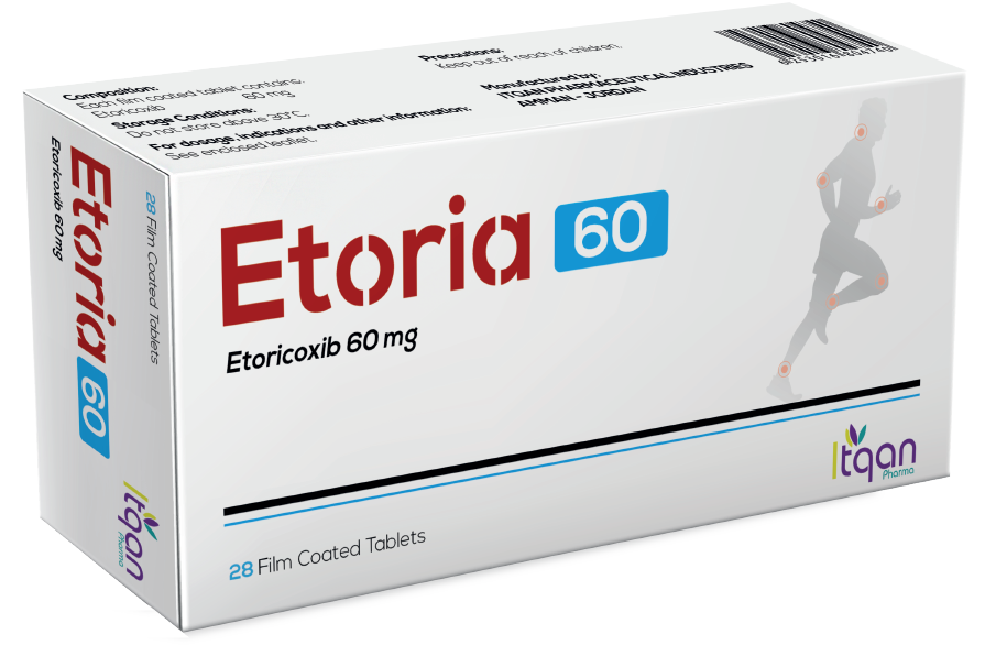 إيتوريا 60 هو دواء يحتوي على إيتوريكوكسيب بتركيز 60 مجم، ويُستخدم حسب إرشادات الطبيب ضمن فئة مضادات الالتهاب غير الستيرويدية الانتقائية (COX-2).