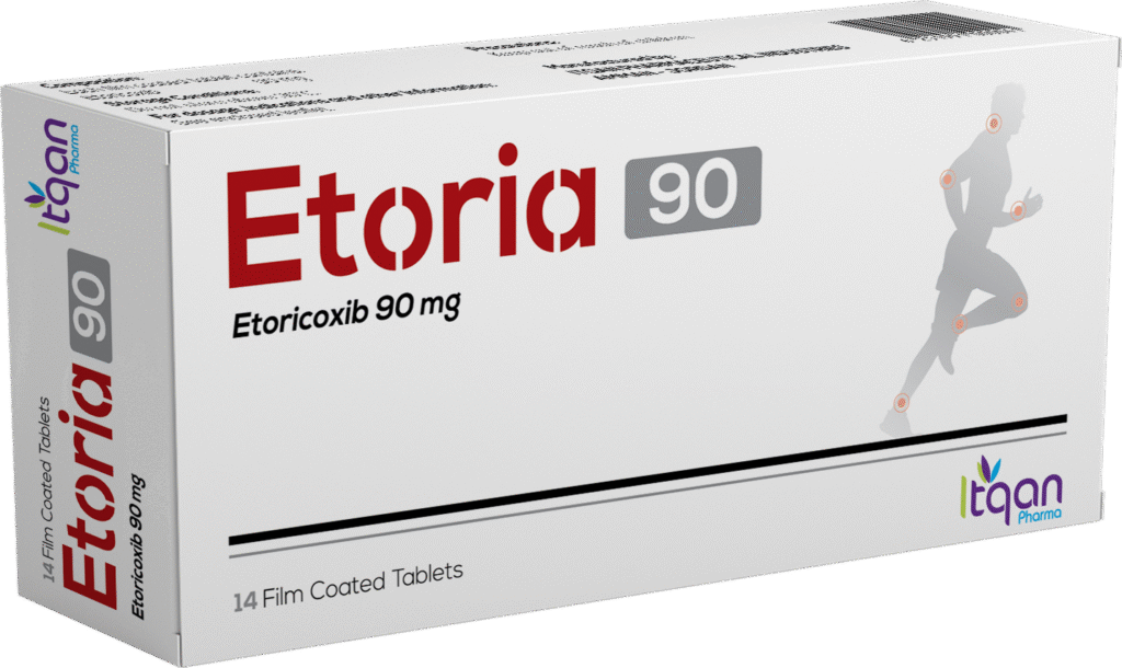 إيتوريا 90 يحتوي على إيتوريكوكسيب بتركيز 90 مجم، ويُستخدم وفق وصف الطبيب لعلاج بعض حالات الألم والالتهاب.