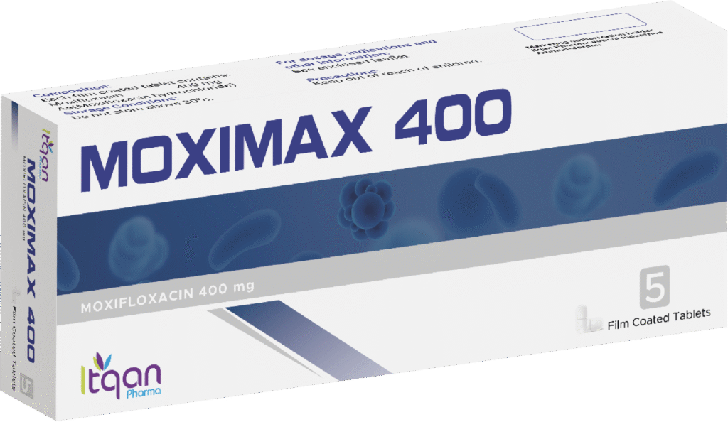 موكسيمـاكس 400 هو مستحضر دوائي يحتوي على موكسيفلوكساسين بتركيز 400 مجم، وهو مضاد حيوي من مجموعة الفلوروكينولونات، يُستخدم بوصفة طبية وفقًا لتقييم الطبيب المختص.